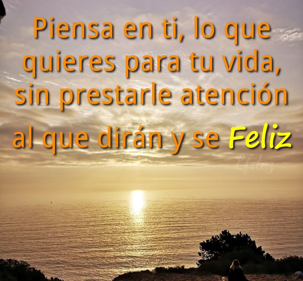 No pienses tanto en el que dirán, piensa en ti, lo que quieres para tu vida, siempre habrán obstáculos y malos comentarios, no dejes que te afecten, ellos quizás no conozcan la felicidad y tú estés en ese punto de satisfacción y plenitud por tus logros, deja que te vean y sonríe por tus éxitos, con eso no le haces daño a nadie. Para ser feliz no existen reglas, solo depende de ti.